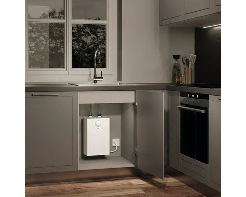 Waarom je dit moet hebben: Dit open onder-sink opslagvat biedt het gemak van warm water doordat het direct beschikbaar is bij één tappunt. Het heeft een opslagcapaciteit van 5 liter en maakt continue temperatuurselectie mogelijk van ongeveer 35°C tot 85°C. Het energiebesparende ontwerp wordt ondersteund door de binnencontainer met zeer efficiënte, recyclebare thermische isolatie. Het standby-vermogen bedraagt slechts 0,24 kWh per dag. De optie om het temperatuurbereik te beperken tot 45°C, 55°C of 65°C voorkomt overmatig energieverbruik. Twee energiebesparende standen (E voor 40°C en e voor 60°C) zijn beschikbaar voor veelvoorkomende toepassingen zoals handen wassen en afwassen. Het apparaat wordt onder het aanrecht geïnstalleerd, waarbij de temperatuurregelaar gemakkelijk bereikbaar blijft. De veiligheids-temperatuurbegrenzer beschermt het apparaat tegen droogkoken en maakt een snelle herstart mogelijk door de stekker even uit te trekken.